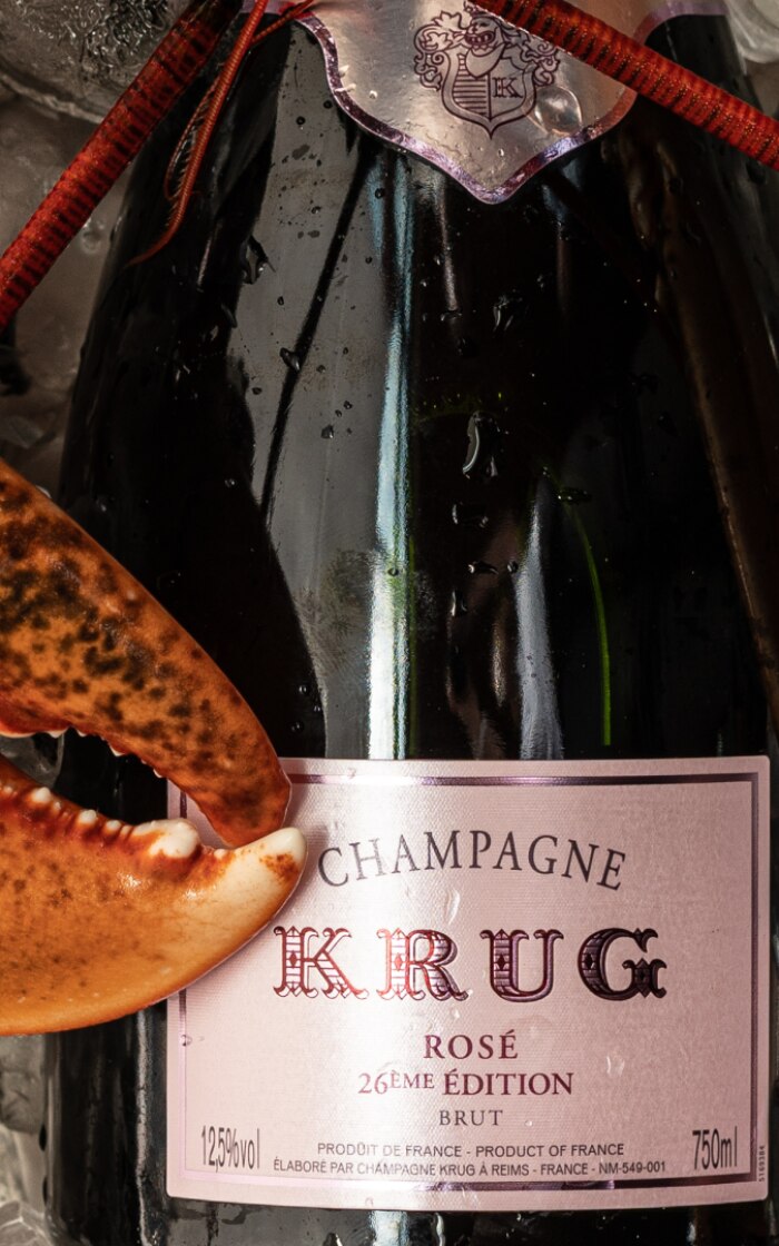 Blue Lobster rice with Krug Grande Cuvée is pure elegance. The succulence of the crustacean and the flavour of the sea find their ideal match in Krug: vibrant, citrus freshness and hints of brioche. The champagne enhances the dish with delicacy, in a perfect dance between land and sea, where tradition and sophistication meet.