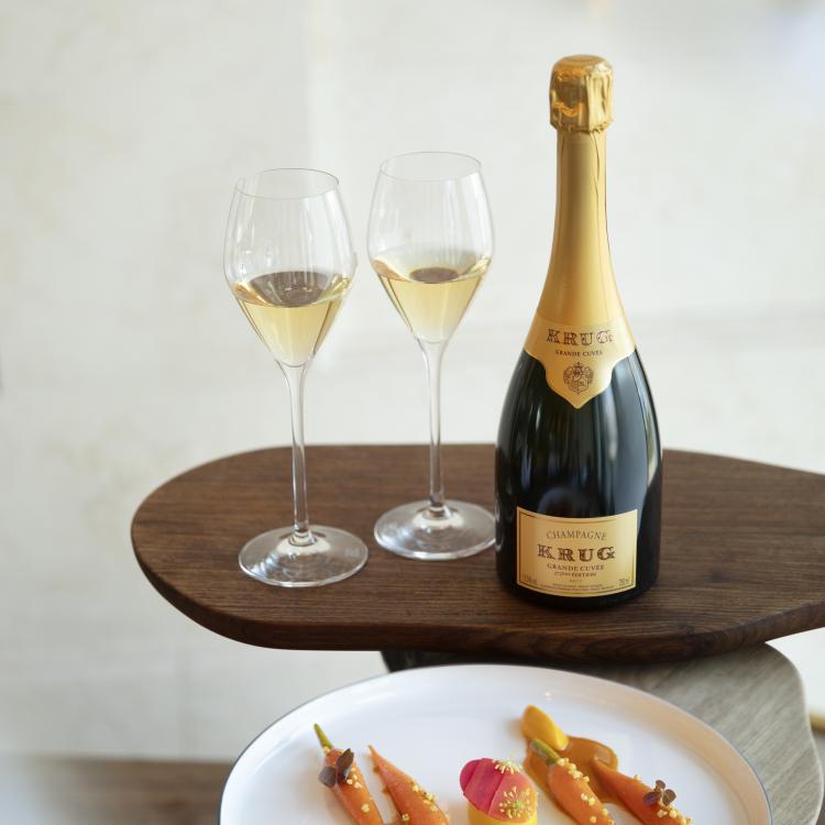 Step into the Krug Room and enjoy “The Garden,” a creative carrot dish paired with Krug Grande Cuvée 173ème Édition. This exclusive experience combines gourmet innovation with the prestige of Krug Champagne.