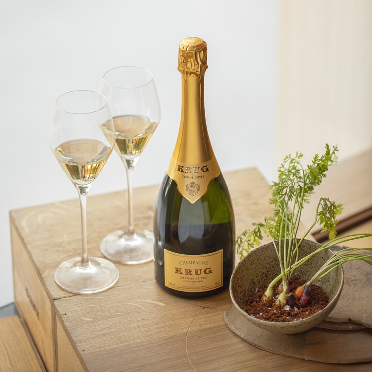 Relish the unique textures of local carrots at Ando, expertly paired with Krug Grande Cuvée 173ème Édition. Chef’s inventive dish celebrates the vibrant flavors of the season in a refined setting.